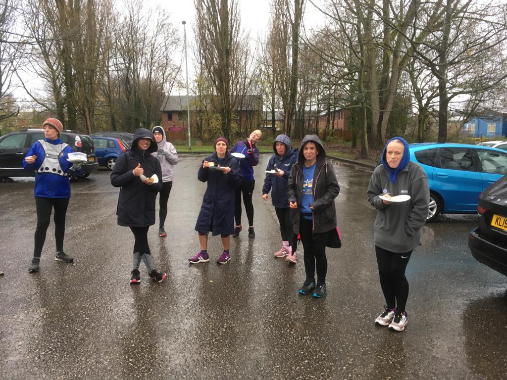 We arrived early on the tram, Chris, Lloyd, Glen, Graham, Jason, Emma and me. We were to be joined by Jackie, Sarah, Wendy and Dennis. We had trained for weeks under Jason’s patient instruction. Plodding the dark, wet streets of Manchester and pounding the dimly lit track at Wythenshawe, narrowly avoiding stray Winston Runners running the wrong way.